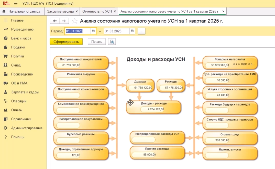 • Закрывать месяц и формировать КУДиР и отчётность, в том числе декларацию по НДС;